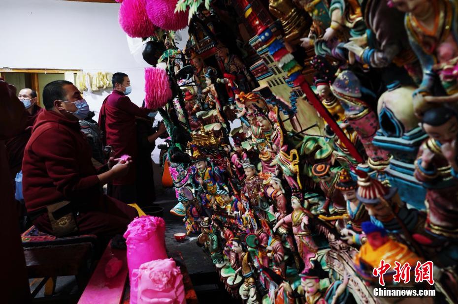 圖為塔爾寺藝僧為酥油花主佛做修飾。馬銘言 攝