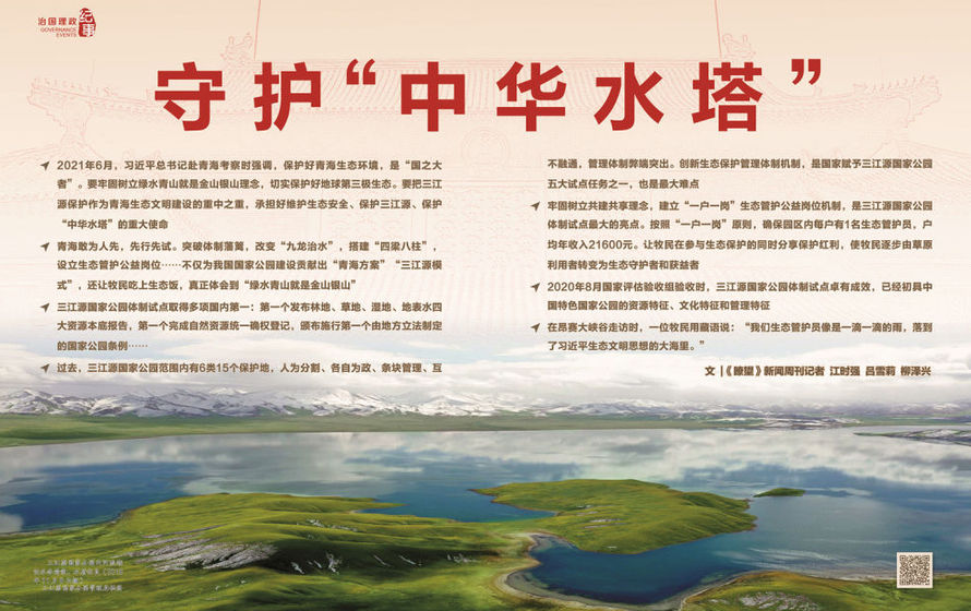 2021年6月,習(xí)近平總書記赴青海考察時強(qiáng)調(diào),保護(hù)好青海生態(tài)環(huán)境,是“國之大者”。要牢固樹立綠水青山就是金山銀山理念,切實(shí)保護(hù)好地球第三極生態(tài)。要把三江源保護(hù)作為青海生態(tài)文明建設(shè)的重中之重,承擔(dān)好維護(hù)生態(tài)安全、保護(hù)三江源、保護(hù)“中華水塔”的重大使命。要繼續(xù)推進(jìn)國家公園建設(shè),理順管理體制,創(chuàng)新運(yùn)行機(jī)制,加強(qiáng)監(jiān)督管理,強(qiáng)化政策支持,探索更多可復(fù)制可推廣經(jīng)驗(yàn)。