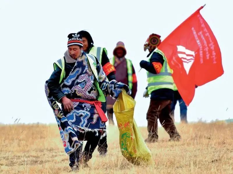 “‘薩’(藏語)是雪豹,‘鬧’(藏語)是巖羊;放牧是巡護(hù),轉(zhuǎn)湖就監(jiān)測;見到動物要記下……”索南文毛邊撿拾垃圾,邊念叨從生態(tài)管護(hù)員培訓(xùn)班上學(xué)到的口訣。