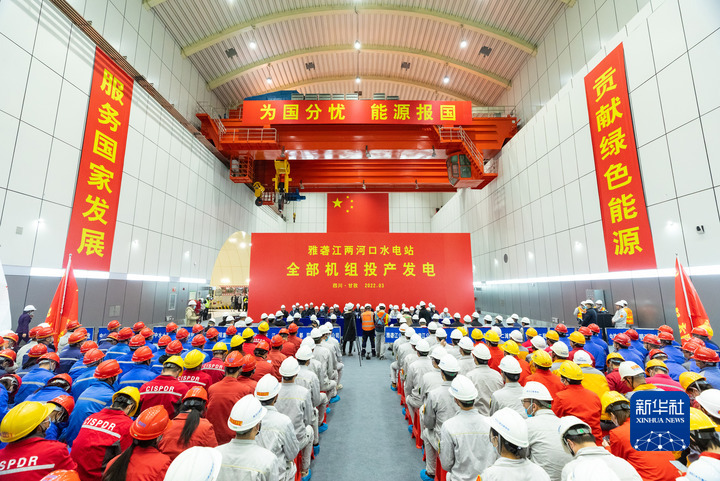3月18日拍攝的雅礱江兩河口水電站全部機(jī)組投產(chǎn)發(fā)電儀式。新華社記者 沈伯韓 攝