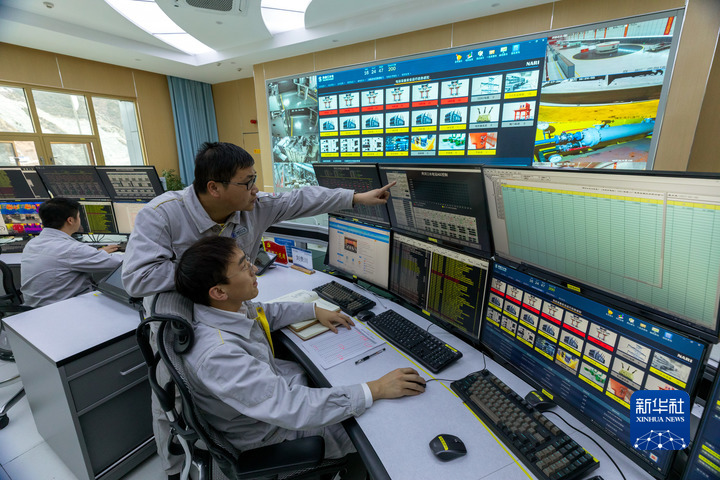 3月17日,在雅礱江兩河口水電站中控室,值班員利用智能監(jiān)控系統(tǒng)監(jiān)測水電站運行情況。新華社記者 沈伯韓 攝