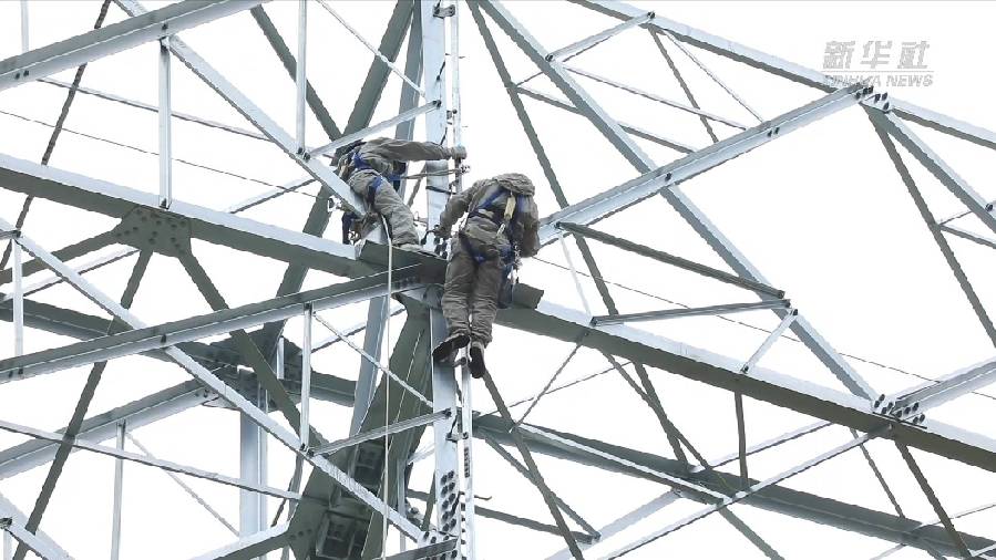 圖為國(guó)網(wǎng)青海超高壓公司輸電專(zhuān)業(yè)人員正在開(kāi)展750千伏青塔I線14號(hào)鐵塔消缺工作。 董慶芳 攝