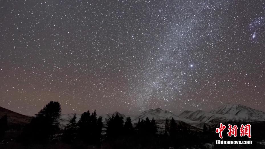 近日,攝影愛(ài)好者在位于祁連山腹地的青海省海北藏族自治州祁連縣,用延時(shí)攝像的方式記錄下鮮有人知的春日祁連山壯麗星河和絕美晨曦。祁連山海拔在4000米至6000米之間,海拔4000米以上的地方,稱為雪線,一般而言,冰天雪地,萬(wàn)物絕跡。雪線之上,夜晚布滿繁星的銀河是祁連山最美奇觀之一。清晨,銀白的曙光漸顯緋紅,朝霞映在當(dāng)?shù)孛癖娦闹小吧裆健迸P纳缴?,“神山”宛如少年俊朗?jiān)毅。馬志原 攝