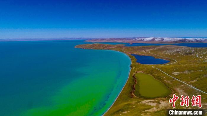 圖為無人機航拍黃河源頭瑪多湖泊一角。多太 攝