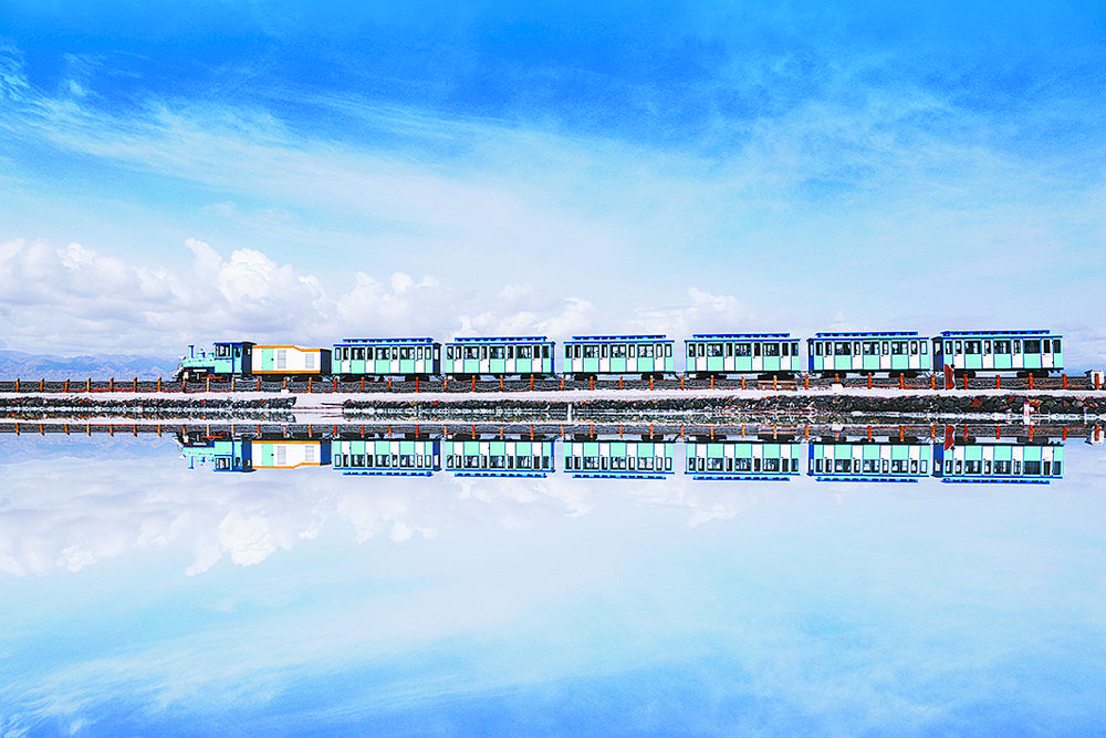 “走進(jìn)鹽湖,湖面猶如一面鏡子,從青海的天空中飄落,落在茶卡,湖如鏡,鏡是湖。藍(lán)天、白云、雪山、人影,純凈的交織如同一場夢境?!边@段留在網(wǎng)絡(luò)上對茶卡鹽湖詩意的描述,觸動了無數(shù)人的心弦。