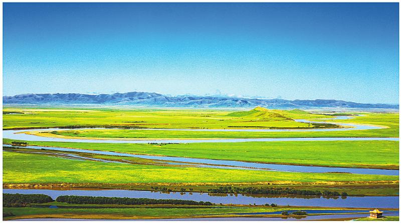 初夏時(shí)節(jié),位于若爾蓋縣的黃河九曲第一灣水豐草美。扎別 攝