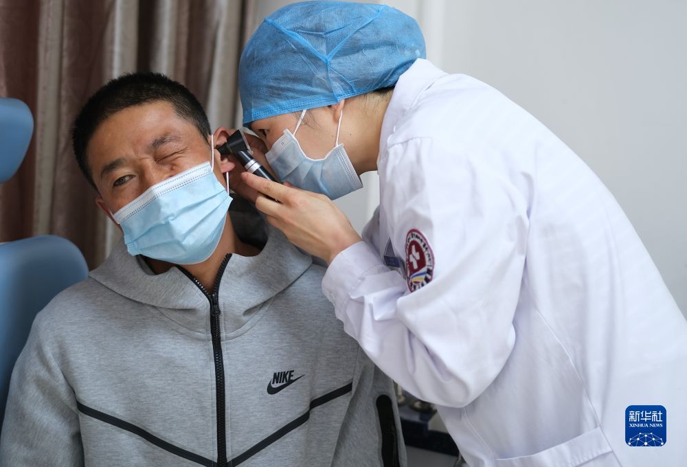 青海省人民醫(yī)院醫(yī)生、青南支醫(yī)隊員王菲在玉樹藏族自治州人民醫(yī)院給患者進行檢查。新華社記者 韓方方 攝
