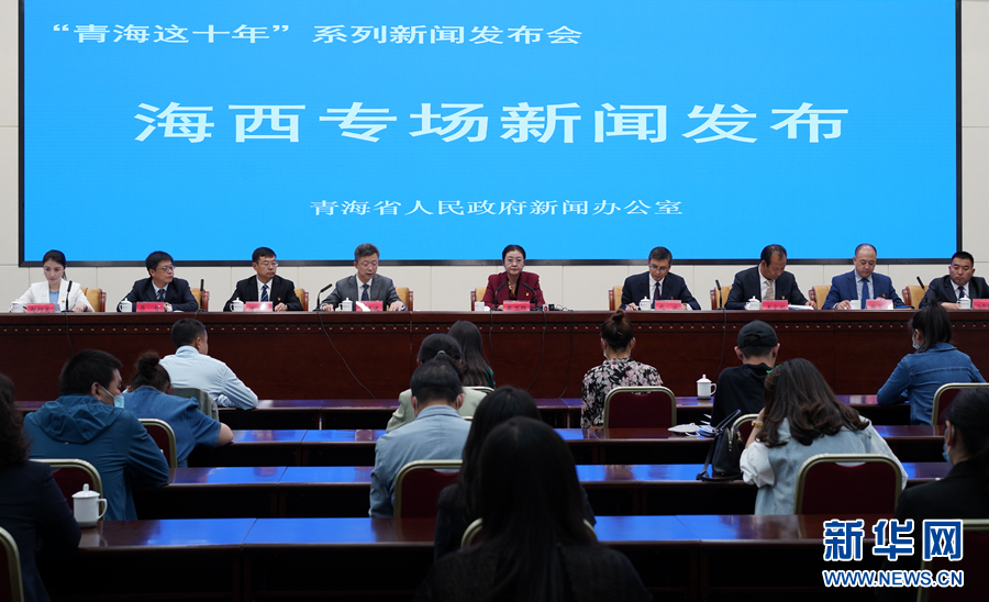 圖為“青海這十年”海西州專場新聞發(fā)布會現(xiàn)場。新華網(wǎng) 卡婭梅朵 攝