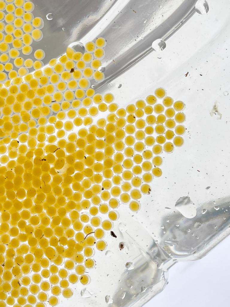 這是6月12日通過人工授精方式獲取的小頭裸裂尻魚受精卵。(受訪者供圖)
