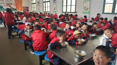 6月10日中午12時,午飯鈴聲響起,理塘縣村戈鄉(xiāng)小學的428名學生在操場上排得整整齊齊,等待就餐。