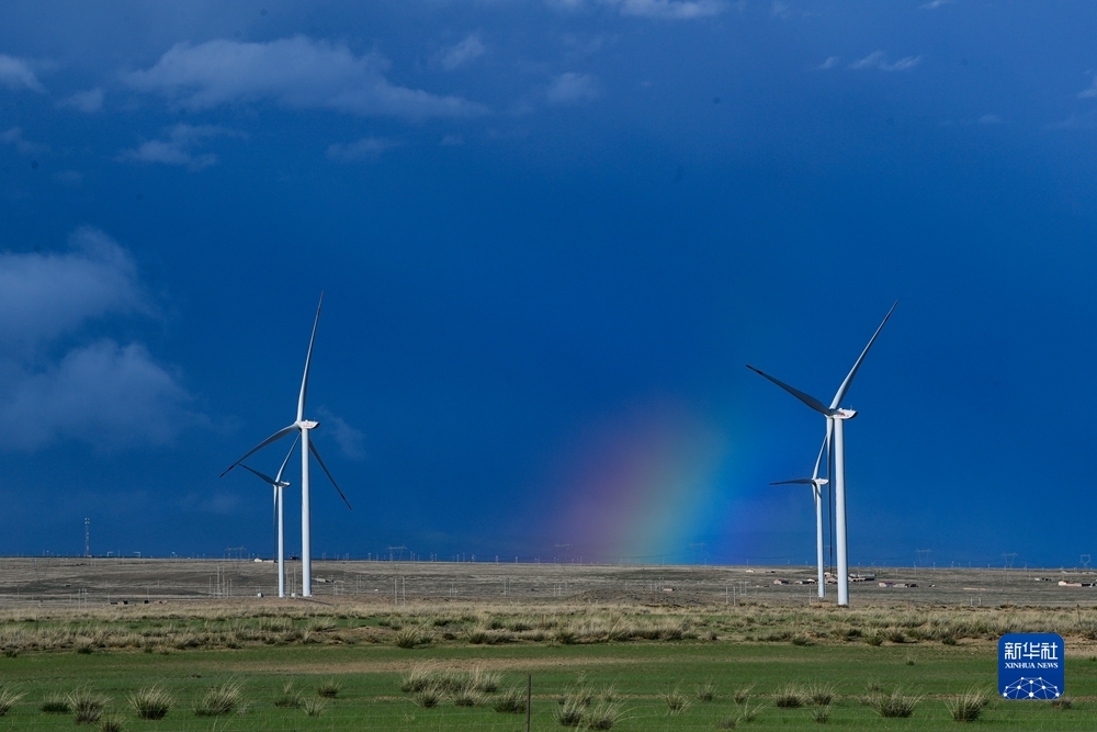 這是6月26日在青海省海南藏族自治州共和縣拍攝的風(fēng)力發(fā)電機。新華社記者 張龍 攝