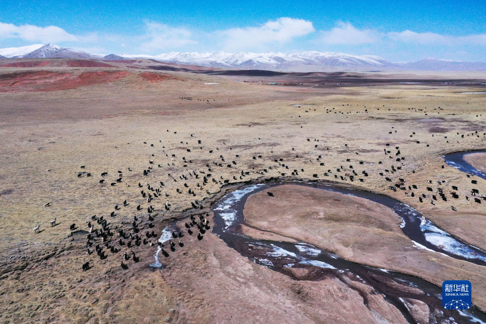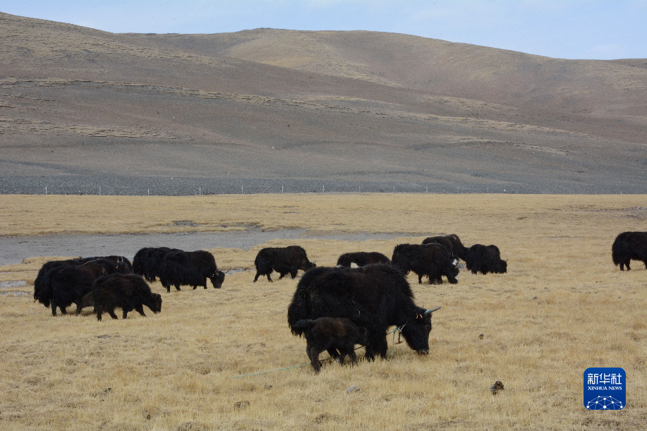 優(yōu)美村生態(tài)畜牧業(yè)專業(yè)合作社牧工趕著牦牛前往夏季草場(chǎng)。新華社記者 韓方方 攝