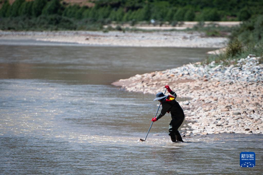 7月24日,長(zhǎng)江科學(xué)院科考隊(duì)員劉晗在瀾滄江源區(qū)的扎曲采集魚(yú)類(lèi)樣本。新華社記者 肖藝九 攝