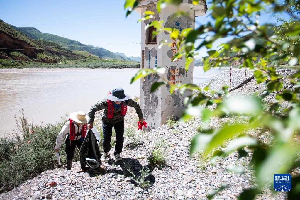 7月24日,長(zhǎng)江科學(xué)院科考隊(duì)員在瀾滄江源區(qū)的雜多進(jìn)行科考工作。新華社記者 肖藝九 攝