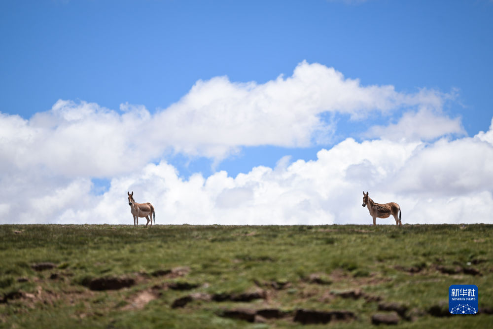 這是7月18日在長江源地區(qū)拍攝的藏野驢。新華社記者 張龍 攝