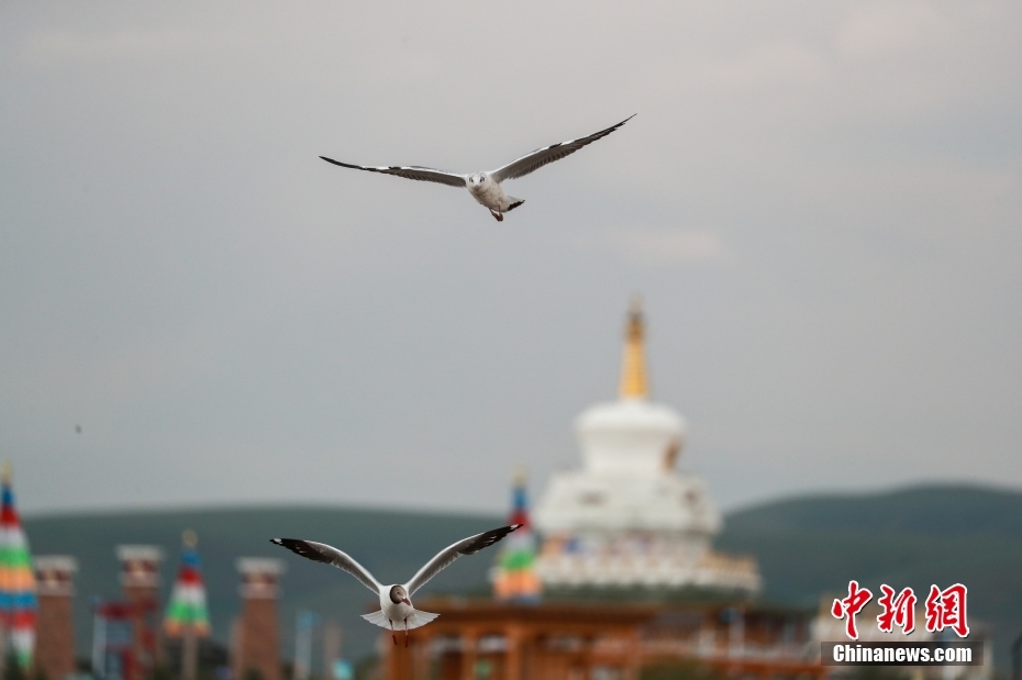 8月11日,青海省海北藏族自治州剛察縣,沙柳河國家濕地公園內(nèi)的大量水鳥在嬉戲覓食。中新社記者 賈天勇 攝