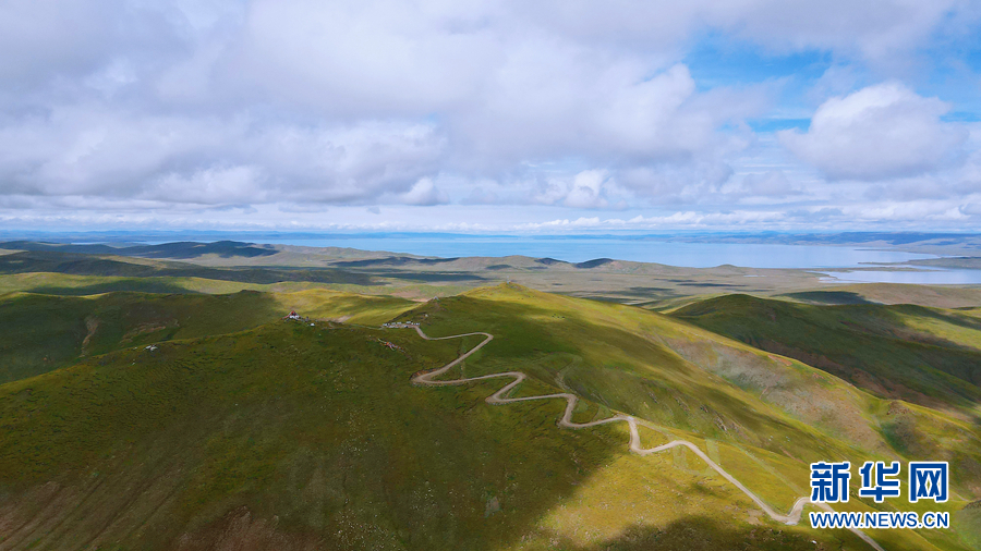 8月14日,航拍鄂陵湖秋日風(fēng)光。新華網(wǎng) 卡婭梅朵 攝