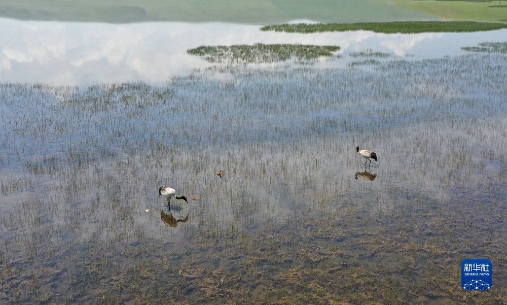 碧水藍(lán)天,萬鳥歡歌?!皽p少人類干擾,改善濕地生態(tài),是對(duì)黑頸鶴等各種鳥類的最好保護(hù)?!鼻嗪:壹?jí)自然保護(hù)區(qū)管理局局長(zhǎng)何玉邦說,從景區(qū)到濕地,從開發(fā)到保護(hù),如今每年都有上百只黑頸鶴來鳥島及周邊濕地繁衍棲息。
