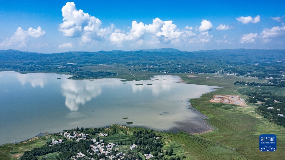 貴州草海國家級(jí)自然保護(hù)區(qū),退耕還湖成效明晰可見(2022年7月8日攝,無人機(jī)照片)。新華社記者 陶亮 攝