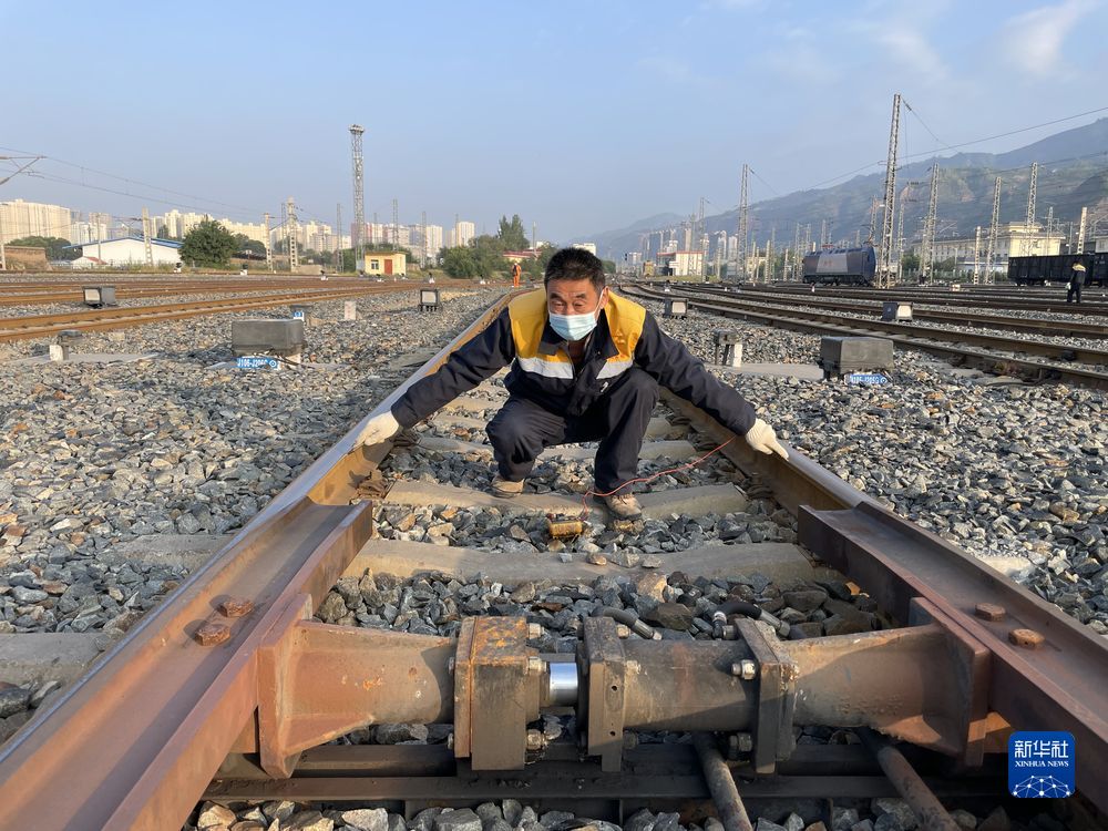 圖為西寧電務(wù)段駝峰信號工區(qū)工長張金玉測試信號設(shè)備。新華社發(fā) 李紅蘭 攝