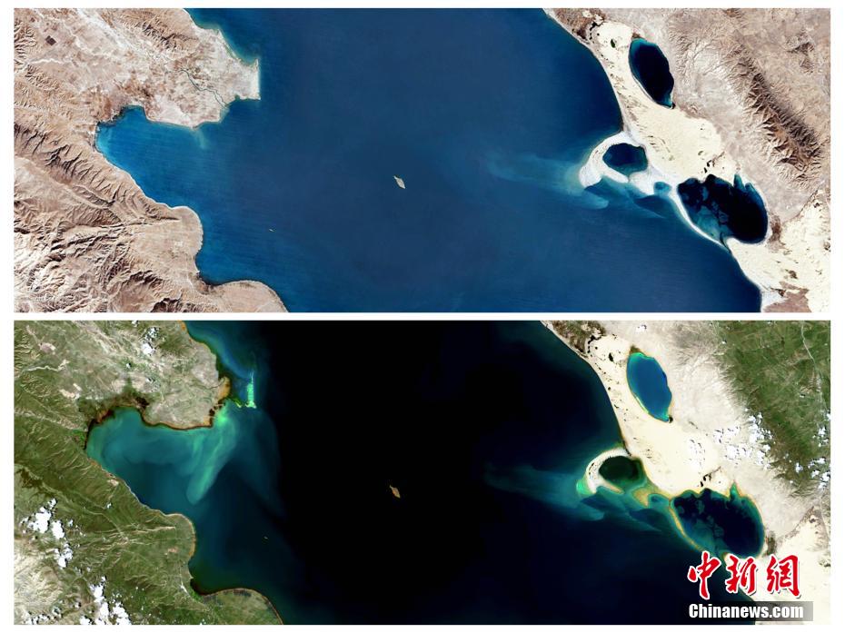 衛(wèi)星鳥瞰青海:沙化治理明顯,青海湖如藍(lán)寶石