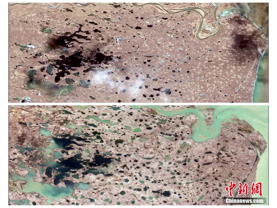 圖為青海省南部星宿海2013年(上圖)和2022年(下圖)“千湖美景”對(duì)比。劉錦秀 供圖
