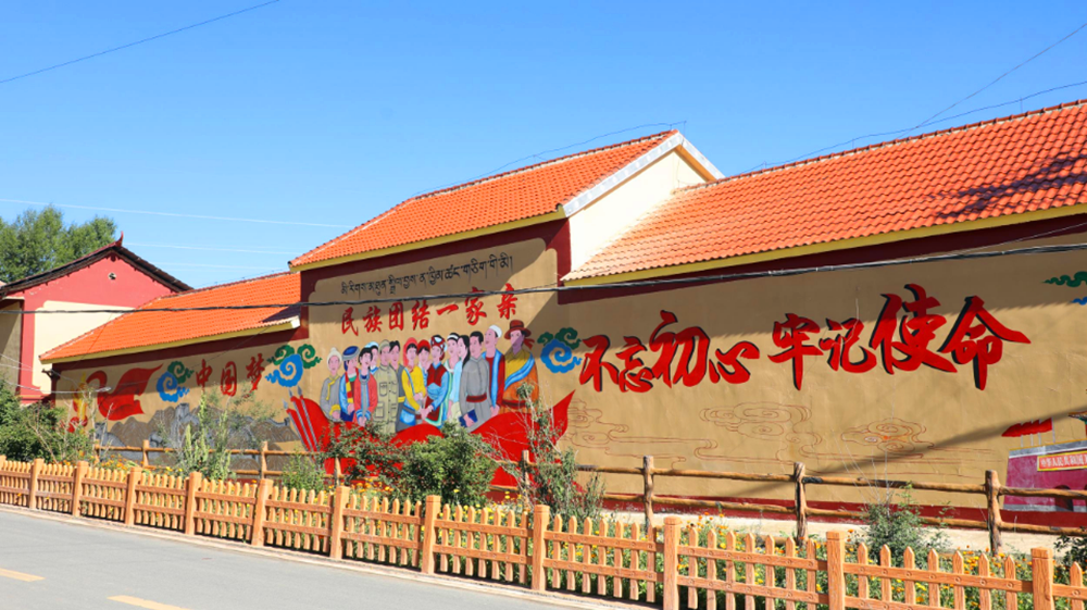 圖為甘南州合作市加拉尕瑪村民族團結(jié)文化墻