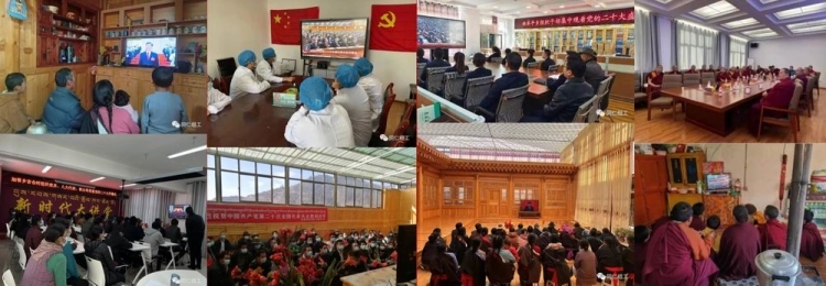 圖為青海省黃南州同仁市各地干部群眾一起收看黨的二十大開幕式,學(xué)習(xí)黨的二十大精神 圖片來源:同仁組工微信公眾號(hào)圖片拼合