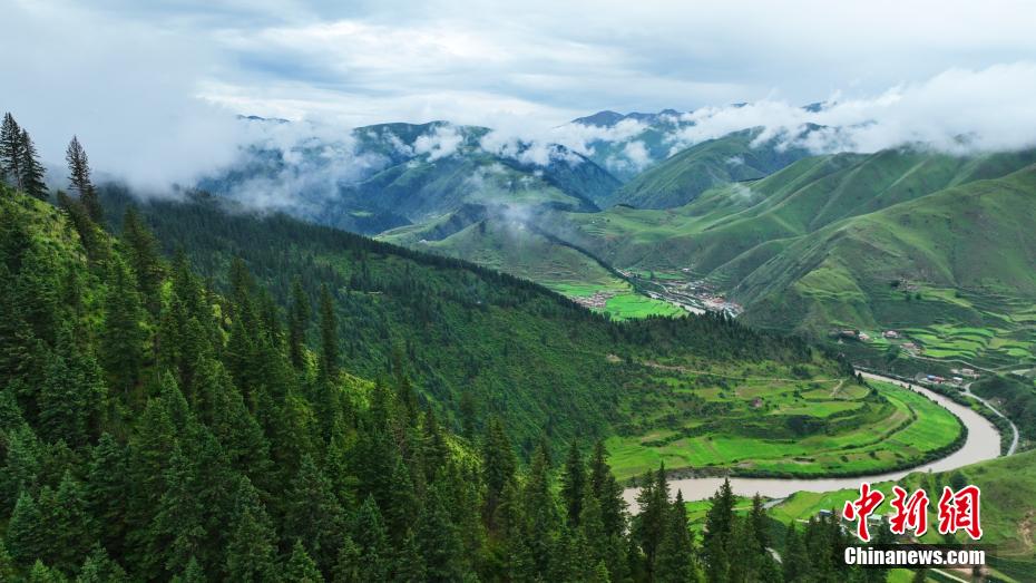 7月11日,一場(chǎng)降雨過(guò)后,云霧如潔白的哈達(dá)飄落在青海省果洛藏族自治州班瑪縣瑪可河國(guó)家森林公園山頭,與樹(shù)木、河流、梯田相互映襯,自然風(fēng)景美如畫(huà)。[詳細(xì)]