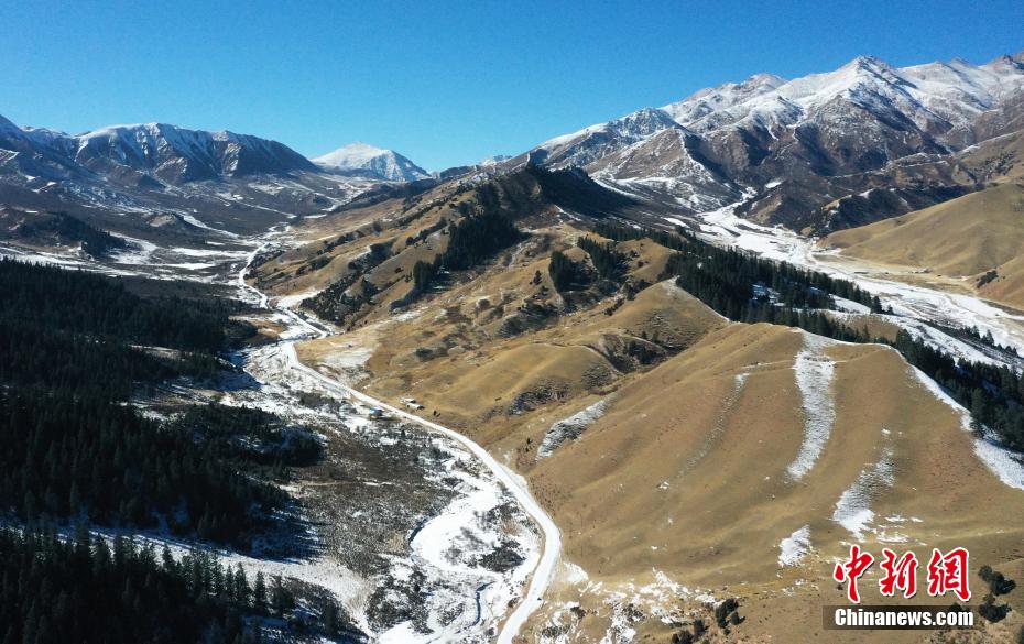 1月18日,航拍祁連山國(guó)家公園青海片區(qū)雪后美景。降雪過(guò)后,青海省海北藏族自治州祁連山國(guó)家公園內(nèi),連綿山川、森林被皚皚白雪覆蓋,盡顯壯麗。