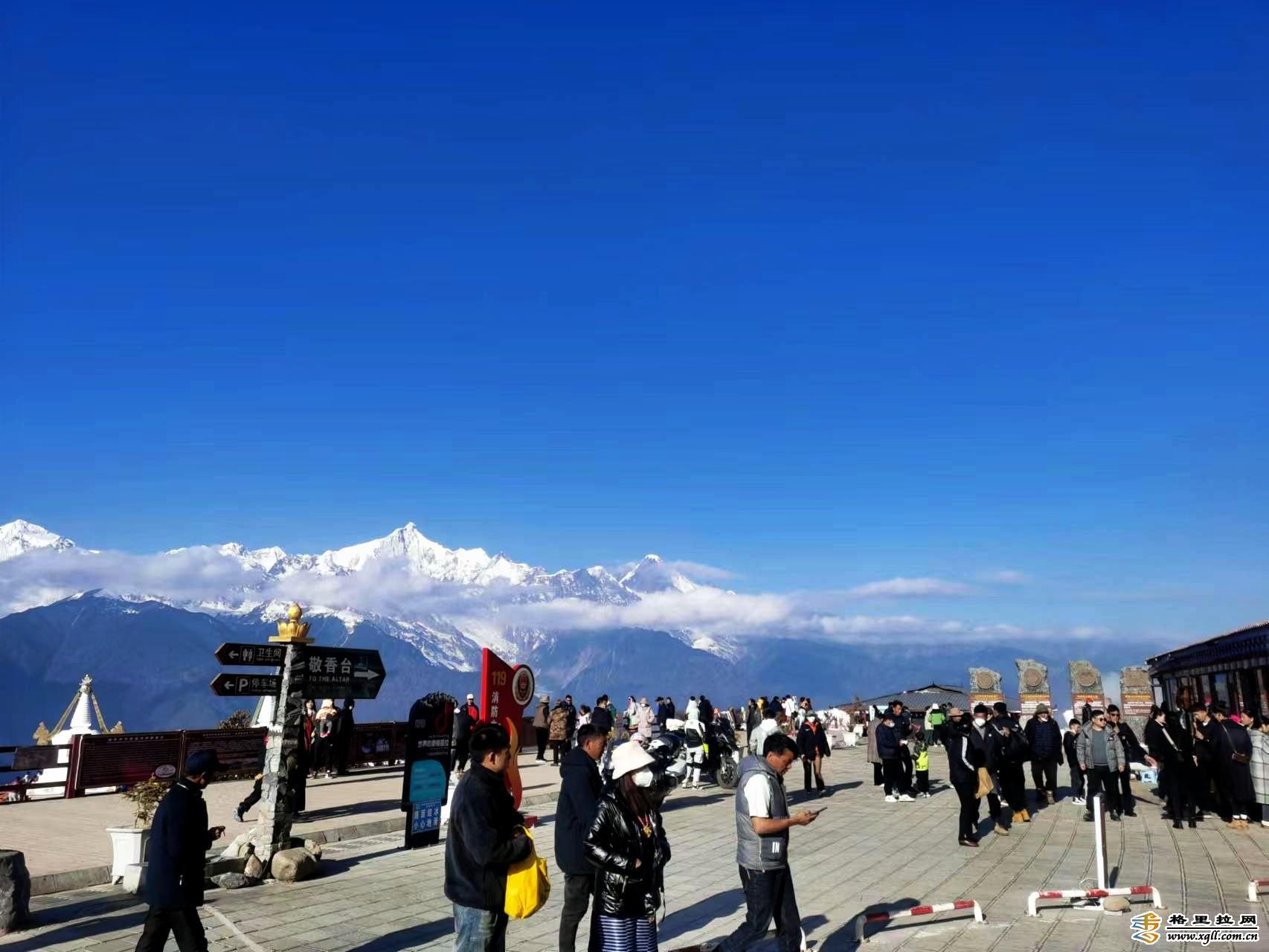 1月31日(大年初十),記者在飛來(lái)寺觀景臺(tái)看到,這里人流如織,游客正興致勃勃地“捕捉”梅里雪山最美的姿態(tài)。