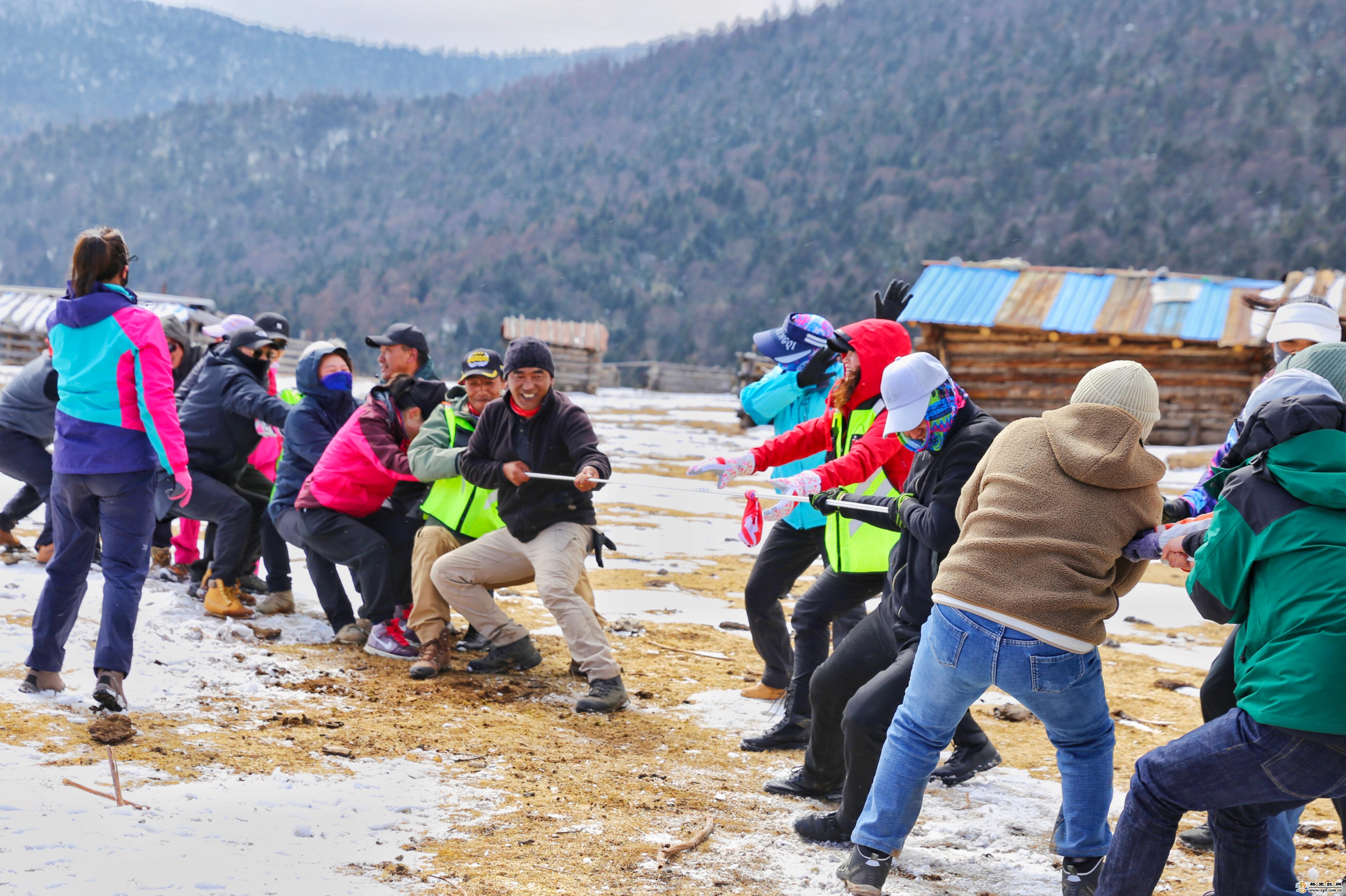 陽光下,大家歡快地打雪仗、拔河、跳鍋莊,不亦樂乎……