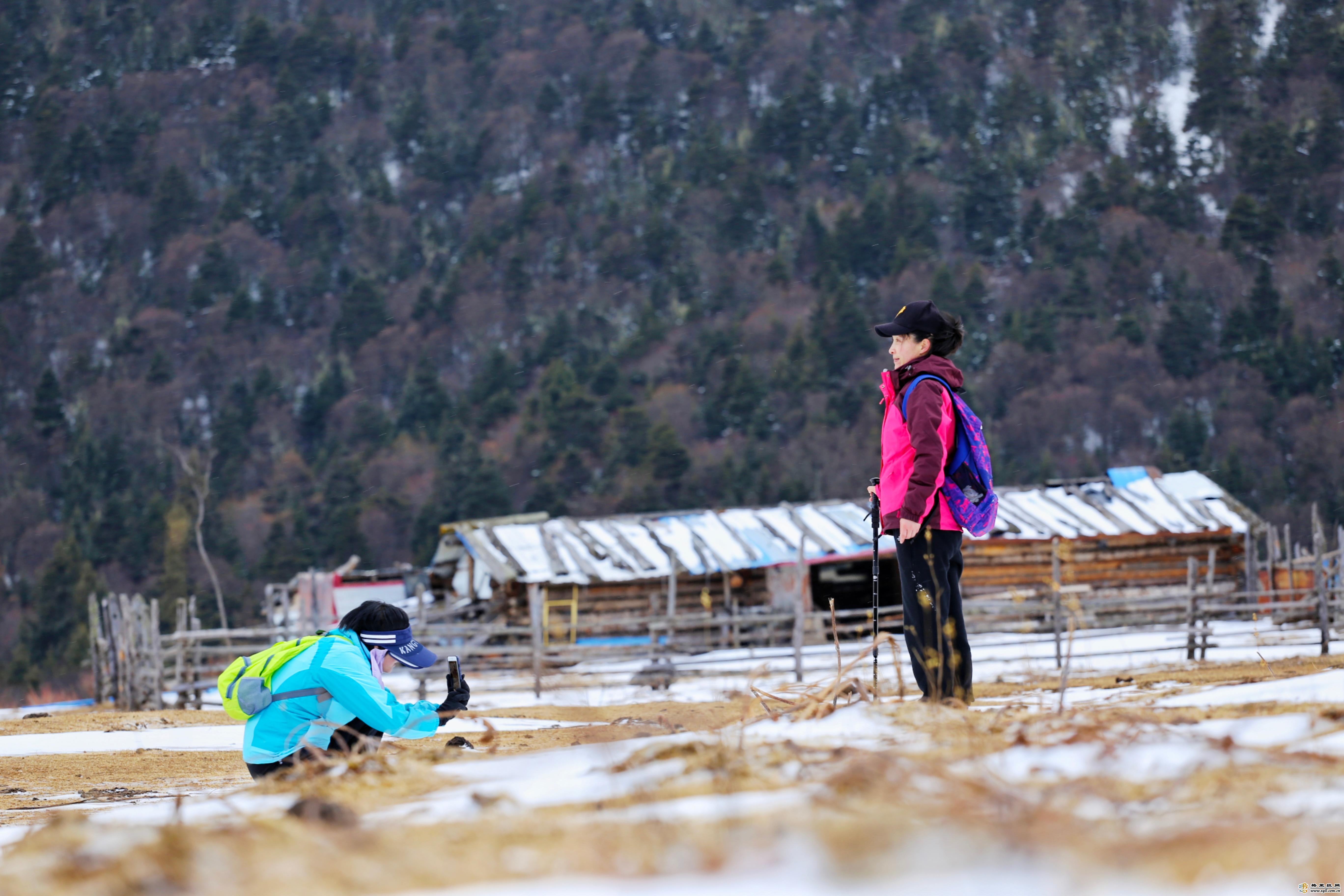 一路上,大家漫游在白雪覆蓋的森林草原中,欣賞著美麗的冰雪風(fēng)景,感受陣陣山風(fēng)將懸崖、樹梢上的白雪吹落到臉龐上的清涼,聆聽溪流破冰流淌的叮咚聲,斑駁的雪色、金黃的草地和牧民的小木屋在亞拉青波牧場上繪出了別致景色。