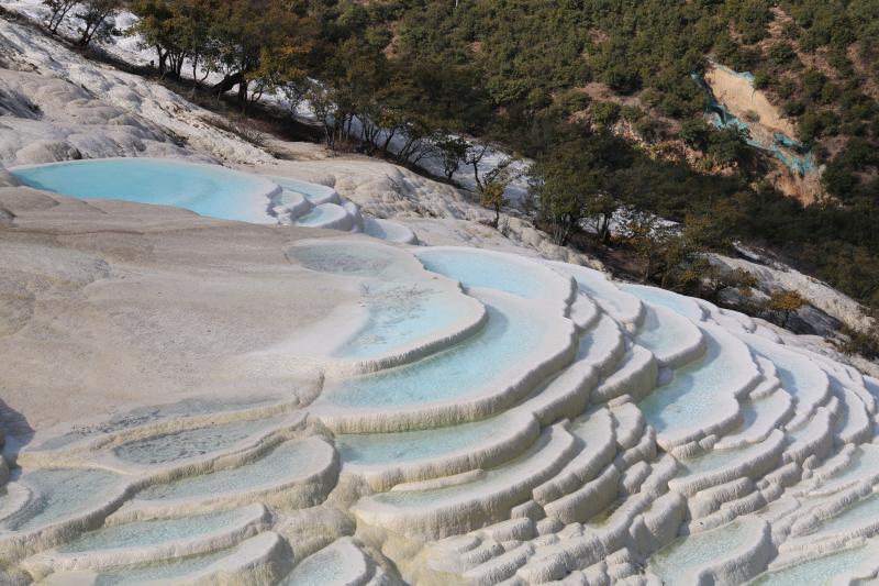 白水臺(tái)景區(qū)位于香格里拉市三壩鄉(xiāng)白地村,距香格里拉市城區(qū)100公里左右,海拔2380米,是迪慶重要的旅游勝地。富含碳酸氫鈣的泉水穿過(guò)山花叢林逐漸沉淀,覆蓋原有的土地,長(zhǎng)年累月形成臺(tái)幔,層層疊疊似梯田,清洌澄碧的泉水由臺(tái)地越過(guò)玉埂銀丘,自上而下沿泉臺(tái)緩緩漫下,形成白水臺(tái)獨(dú)特的自然景觀。