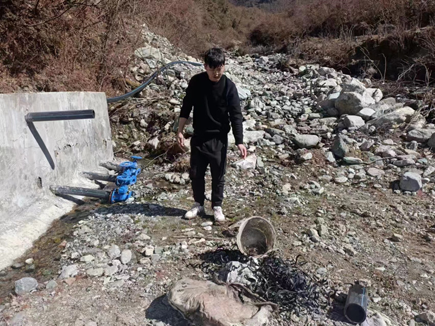 瀘定縣嵐安鄉(xiāng)新津巖水溝水源地位于嵐安鄉(xiāng)政府所在地東北側(cè)直線距離約3.3公里的山坡上,為河流型水源地,系一條流向大渡河的小河,供水覆蓋范圍為昂烏海子組和腳烏山梗子組。