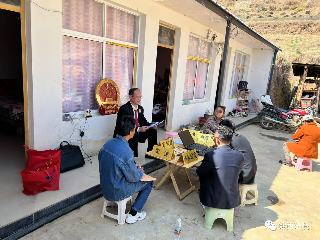 2023年3月14日,為減輕當(dāng)事人訴累,提高辦案質(zhì)效,立案庭干警一行4人到維西縣保和鎮(zhèn)蘭永村的當(dāng)事人家中進(jìn)行巡回開(kāi)庭。[詳細(xì)]