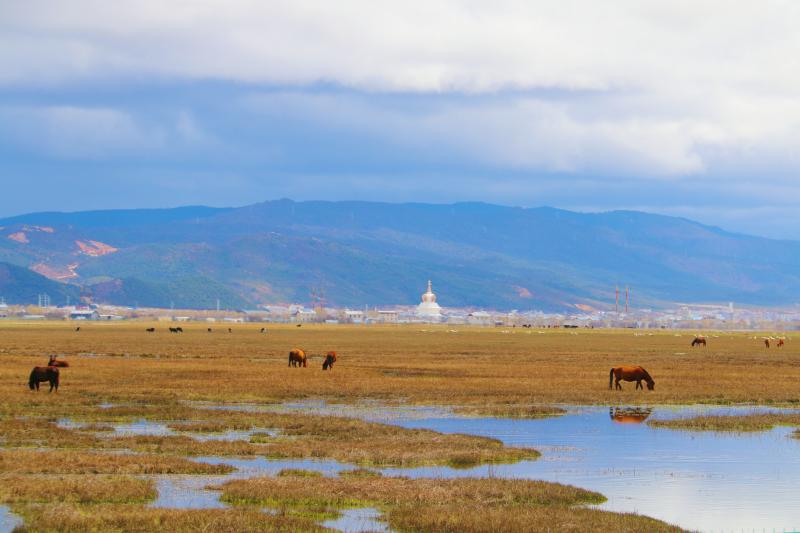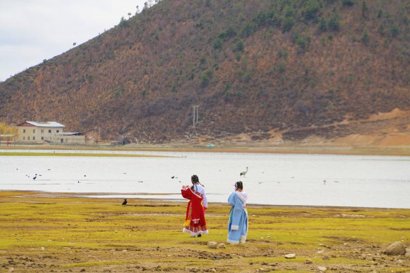 此時(shí)的納帕海,黑頸鶴還未離去,草色漸青,水草抽芽,鳥(niǎo)兒和牛羊悠閑覓食,這就是高原上的春天!