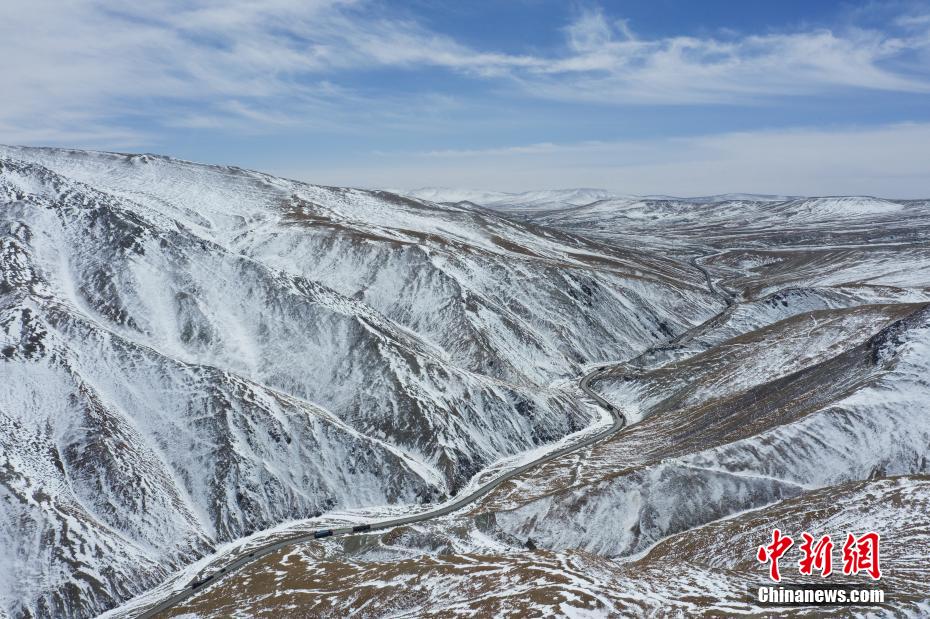 3月25日,航拍位于青海省海西蒙古族藏族自治州境內(nèi)的昆侖山。一場春雪過后,青海省海西州境內(nèi)的昆侖山銀裝素裹,青藏鐵路和青藏公路并行其中,雄偉壯麗。