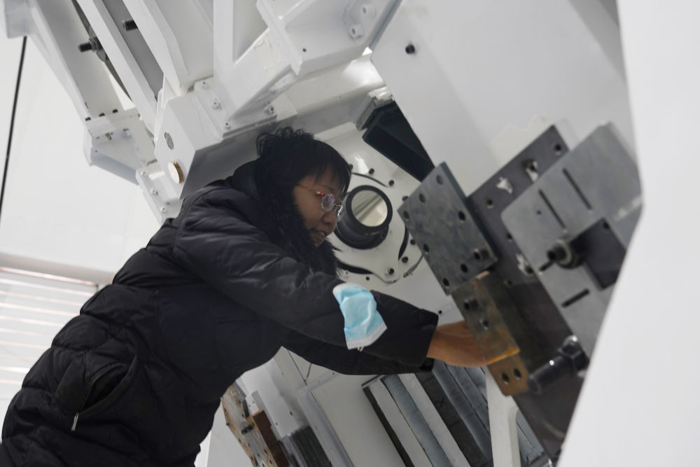 4月8日,中國科學(xué)院國家天文臺懷柔太陽觀測基地總工程師王東光在AIMS圓頂內(nèi)工作。新華社記者 陳杰 攝