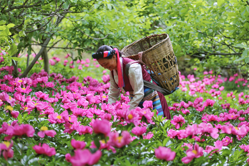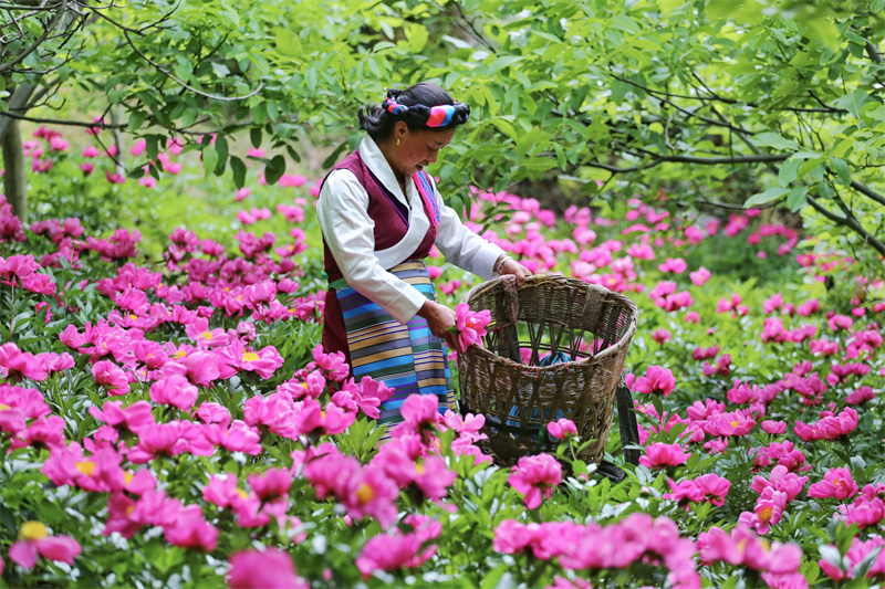 五月,正是芍藥花開的最佳時節(jié)。在維西縣塔城鎮(zhèn)其宗村村民楊小花家的芍藥地中,大片的芍藥花競相開放,花團錦簇、花香四溢,楊小花正在田間忙碌著采摘芍藥花朵,芍藥花及根采挖后都可出售,在增加收入的同時也成為田間地頭一道美麗的風景線。