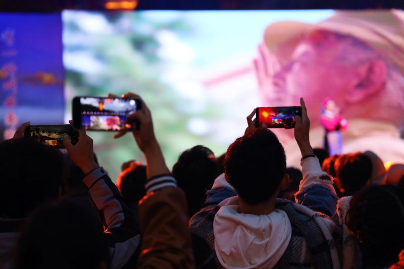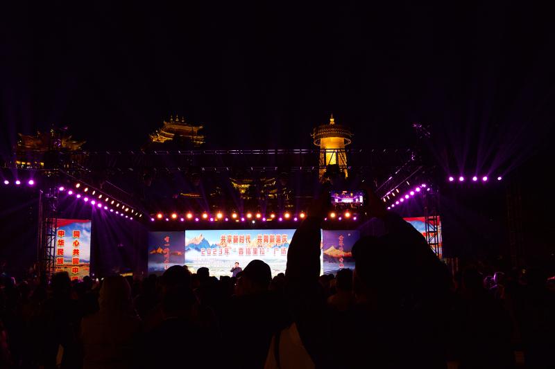 演唱會結(jié)束后,“彩云之南等你來”世界的香格里拉歡迎您——夜間群眾文藝演出活動隨即開始,現(xiàn)場燈光閃爍,游客與當?shù)厝罕娨黄?,圍著廣場中央的篝火載歌載舞,盡情體驗縱情舞蹈的歡樂。