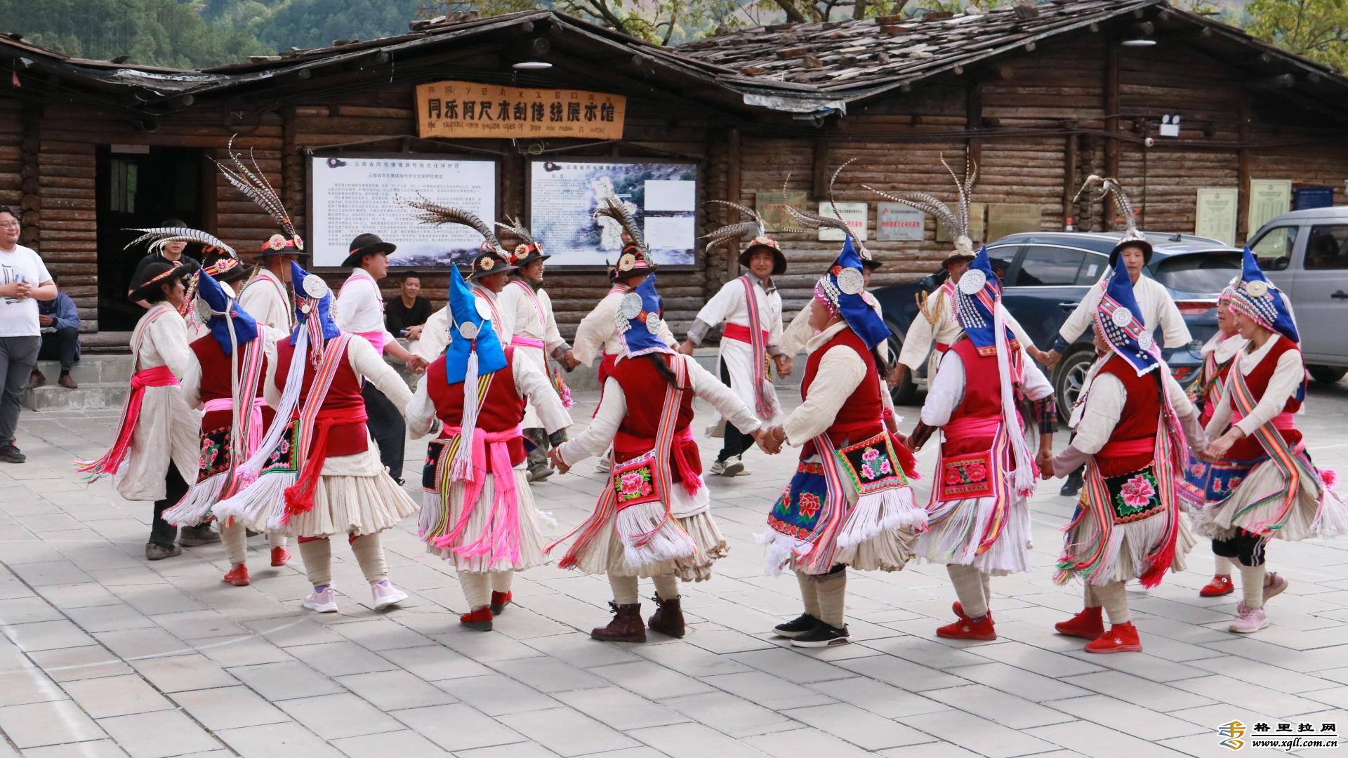 阿尺目刮是一種傈僳族群眾自娛性舞蹈,隨著領舞者哼唱的曲調(diào)響起,大伙隨即踏歌起舞,其曲調(diào)無須樂器伴奏,悠揚婉轉(zhuǎn), 可急可緩,給人以舒展自如的感受。