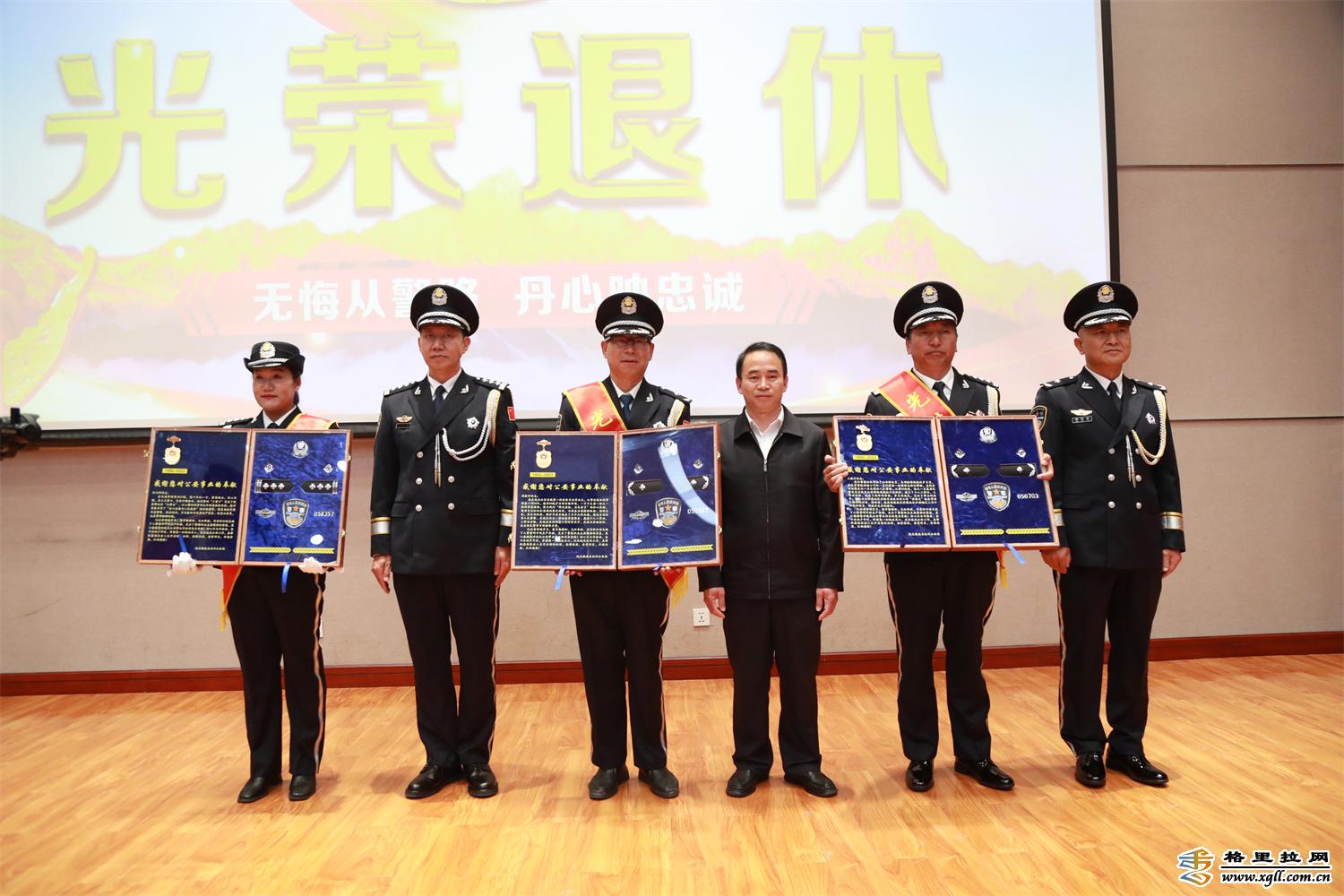 伴隨著歌聲,戰(zhàn)友們?yōu)?位退休同志獻(xiàn)上哈達(dá)和最美好的祝福。