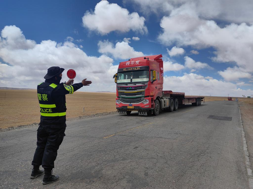 三江源國家公園長江源園區(qū)可可西里管理處保護站工作人員引導(dǎo)車輛避讓遷徙羊群。(三江源國家公園長江源園區(qū)可可西里管理處供圖)
