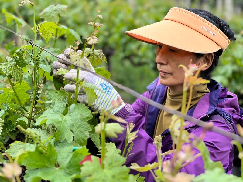 五月,瀾滄江河谷兩岸葡萄架上片片綠蔭生機盎然。眼下,正值葡萄養(yǎng)護時期,農(nóng)戶們正在地里忙著除草、施肥,一派繁忙的景象。