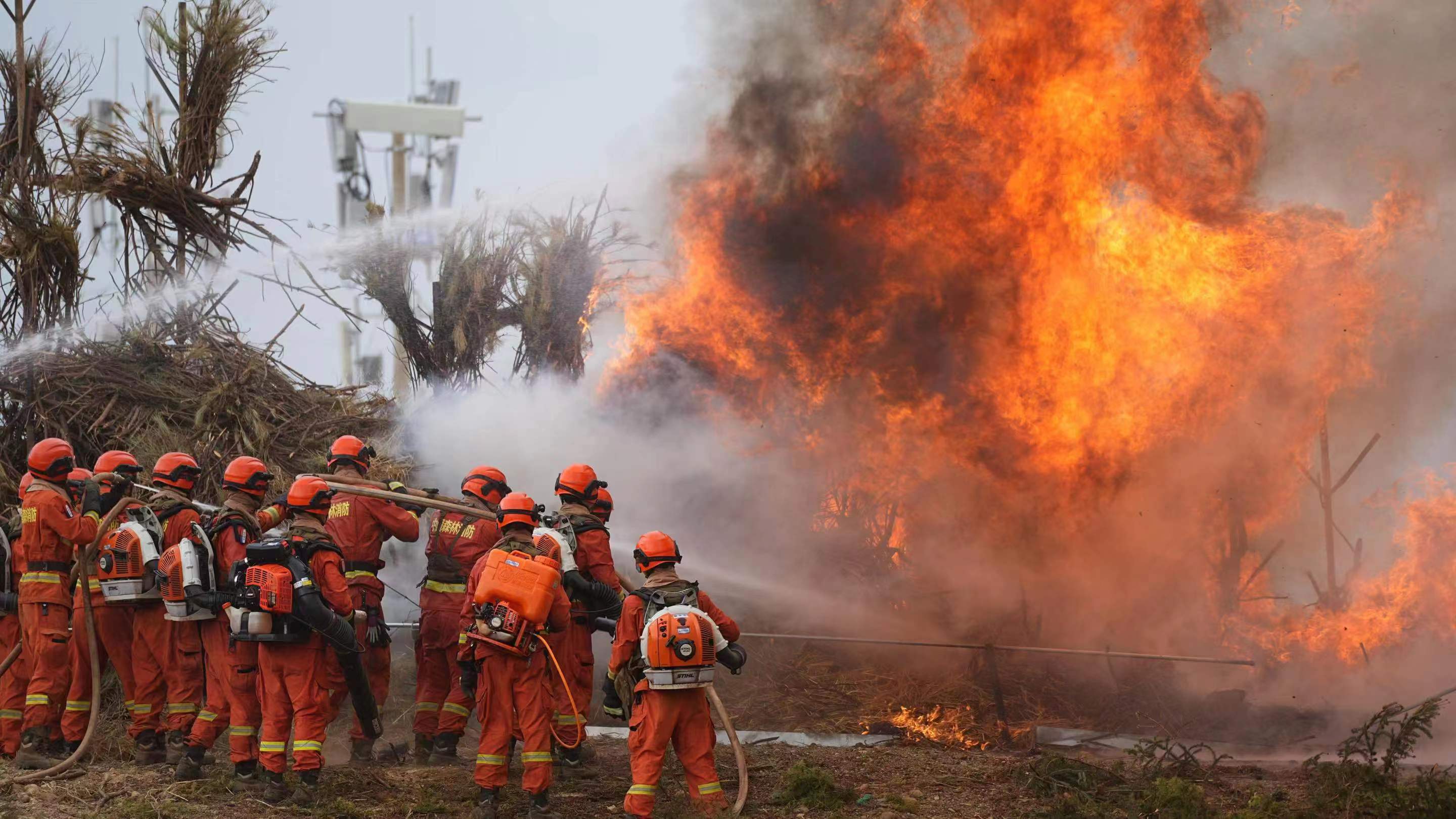 本次演習(xí)模擬的是麗江市玉龍縣發(fā)生一起7.6級地震,由此引發(fā)的連鎖反應(yīng)造成了中緬油氣管道泄漏,西電東送輸變電站線路損毀,森林火災(zāi)等多項(xiàng)災(zāi)害。其中,最為危險(xiǎn)的莫過于急速爆燃的飛火在“高山峽谷”間肆意飛竄。