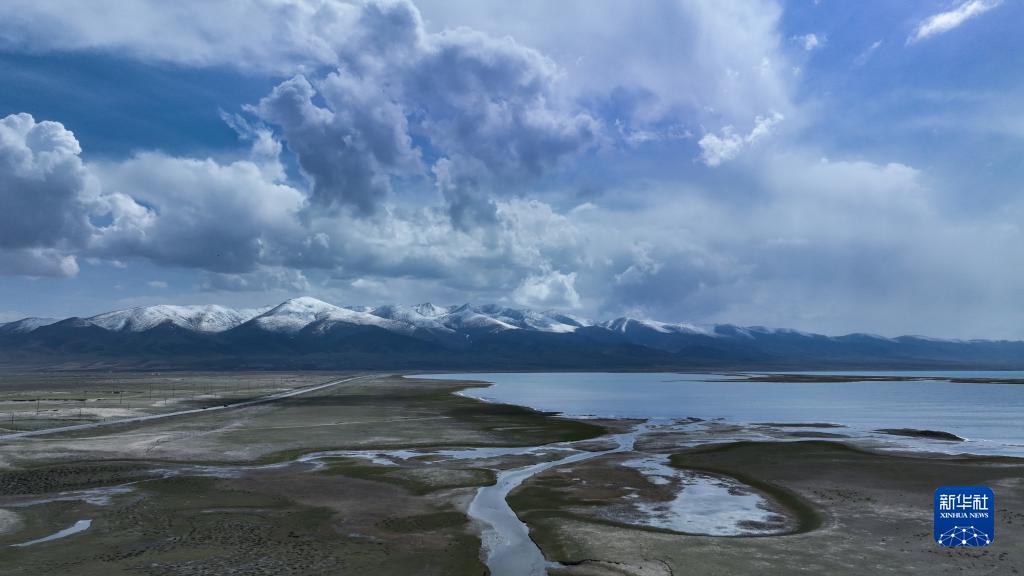 這是5月17日在青海省海南藏族自治州共和縣石乃亥鄉(xiāng)拍攝的青海湖一角(無人機(jī)照片)。新華社記者 解統(tǒng)強(qiáng) 攝