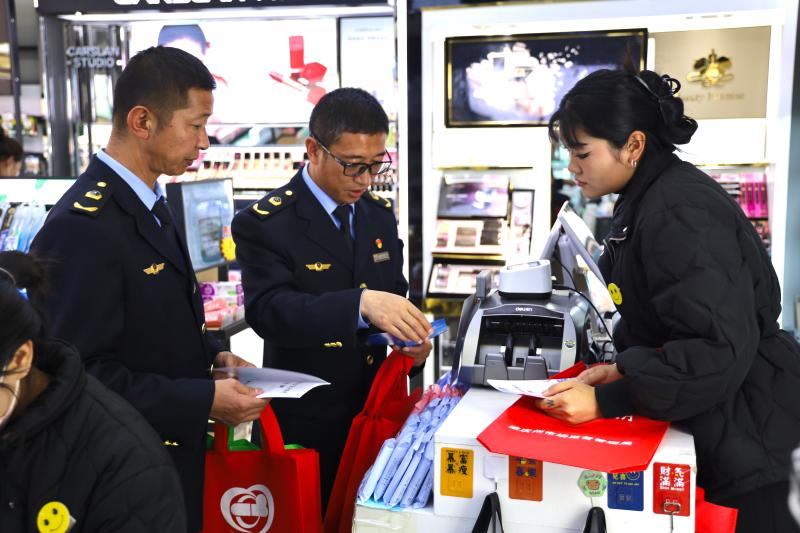 啟動(dòng)儀式結(jié)束后,市場(chǎng)監(jiān)督管理部門的工作人員為現(xiàn)場(chǎng)群眾發(fā)放并講解宣傳冊(cè),同時(shí)為化妝品經(jīng)營(yíng)商進(jìn)行上門普法,規(guī)范企業(yè)經(jīng)營(yíng)行為。