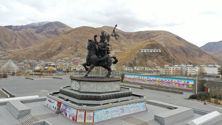 這是青海省玉樹藏族自治州玉樹市格薩爾王廣場(無人機(jī)照片)。新華社記者 張宏祥 攝