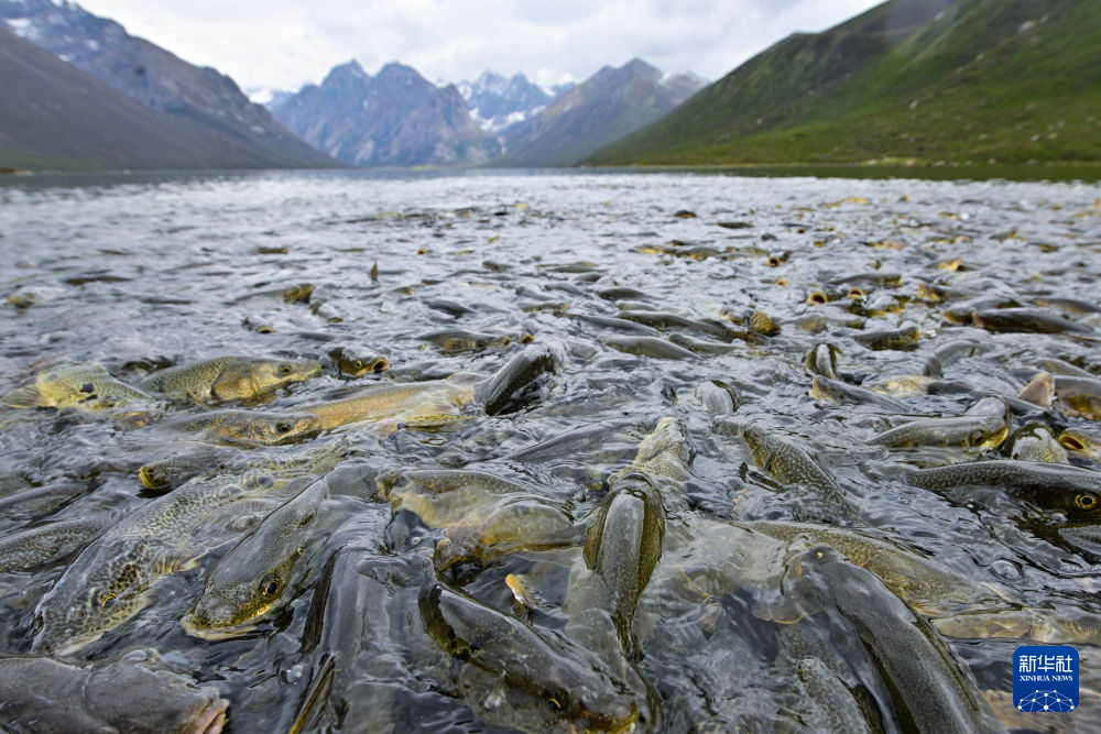 6月11日,在青海省果洛藏族自治州久治縣境內(nèi)的年保玉則,裸鯉在水中活動(dòng)。新華社記者 張龍 攝